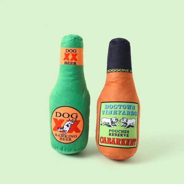 Beer Bottle Shaped Plush Sounding Chew Toy for Pets